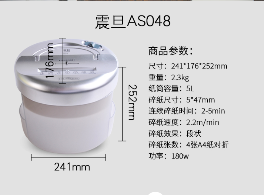 震旦AS048/AS049 桌面型辦公碎紙機(jī)單次4張低音便攜小型家用 桌面 淺灰色AS048