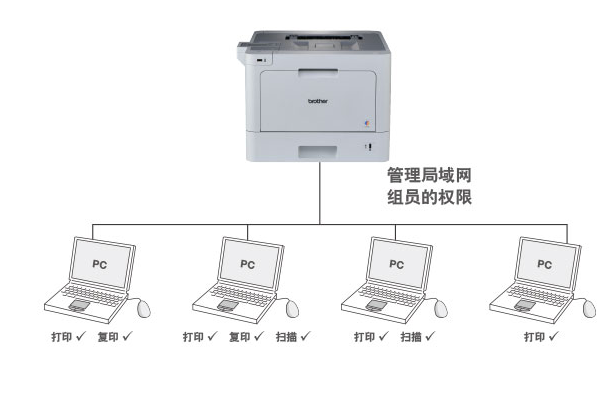 IT管理員可以通過此功能來賦予局域網(wǎng)內(nèi)的各個組員的權(quán)限,如進(jìn)行打印、復(fù)印、掃描、打印頁數(shù)的限制等。